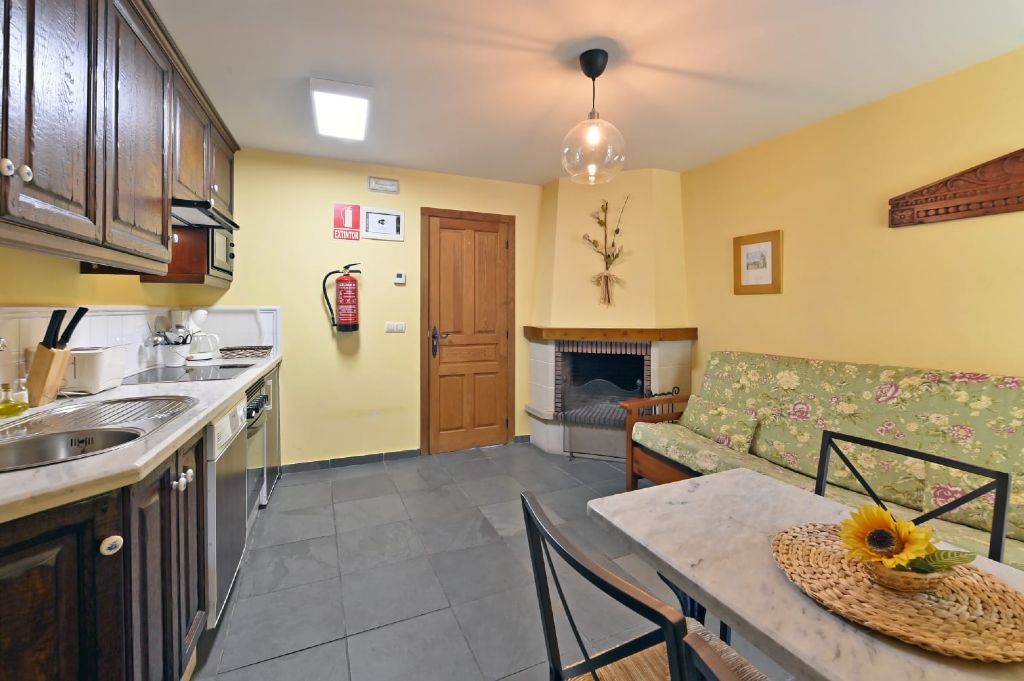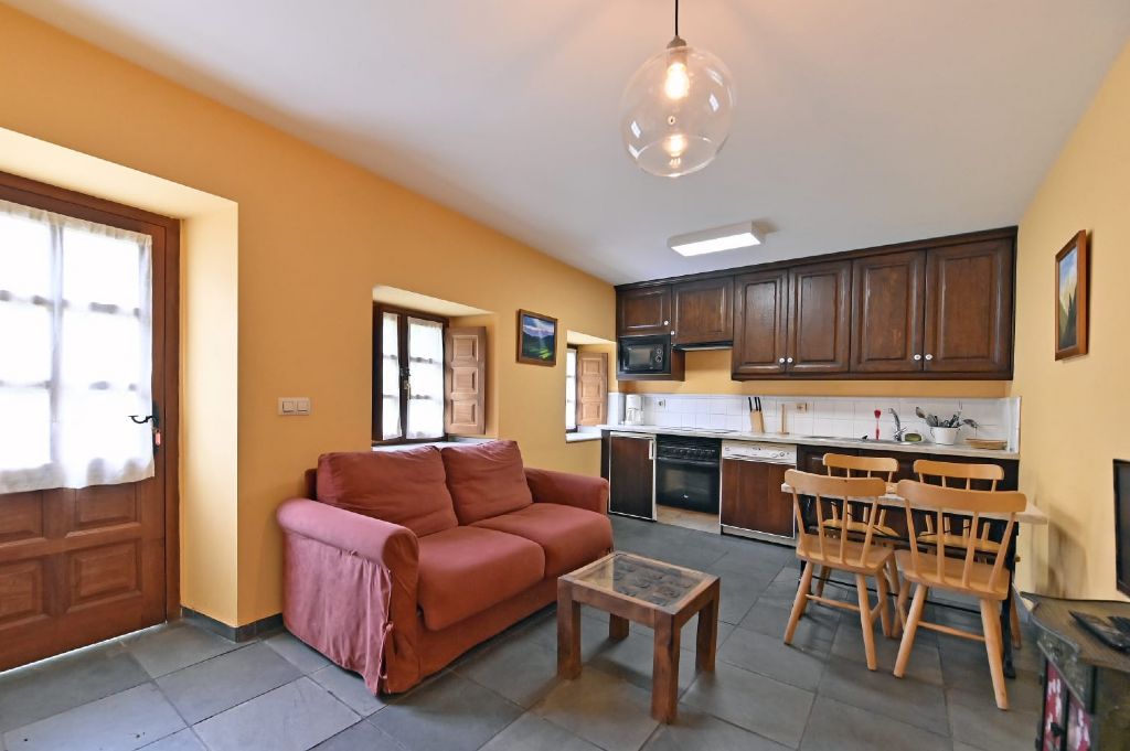 Este apartamento consta de un acojedor salón-cocina , totalmente equipada (electrodomésticos, menaje, sofá cama...) además de una chimenea francesa.