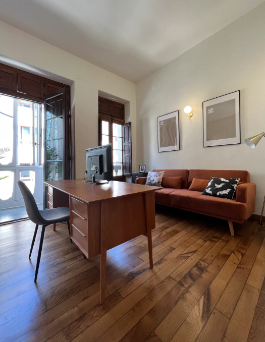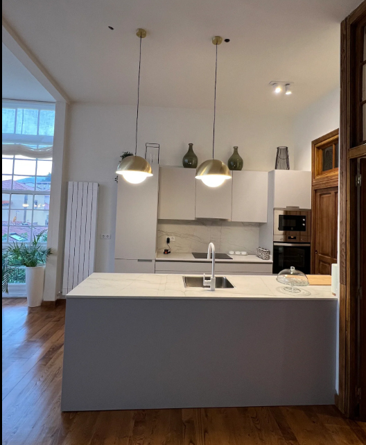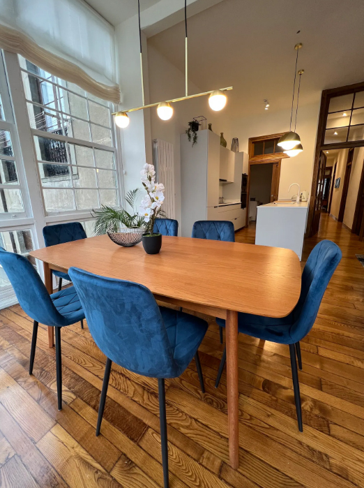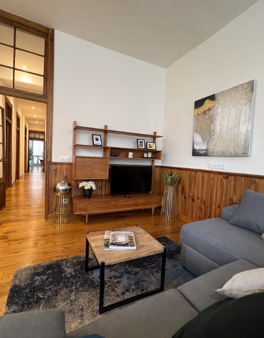 La Suite está situada en pleno centro de la Villa de Cangas del Narcea y puede alojar 5-6 personas con sus 3 camas y su sofá-cama. Se trata de un piso de 160 m2 en un edificio del 1900 que fué reformado en 2023 y decorado y amueblado con estilo modero-Mid Century.