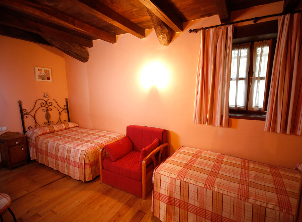 We have five beautiful and comfortable double rooms, all equipped with TV, bathroom and heating, leaving the wooden corridor from where you can enjoy breathtaking views. In our charming ´portalín´, built in pure Asturian style, are the common areas of the house. We welcome you in the ´Store Room´ where you can buy all kinds of handicrafts in the area (clogs, baskets, pottery, etc ...). Of course, you can not miss the Asturian cider and wine Cangas. In the same hall portalín is the ´Dining-room.´ A magnificent space where you can enjoy good music, good conversation or reading a good book while feeling the sweet clatter of fire in the fireplace. Our visitor can not miss the gift to please the Asturian dishes represent the ´love´ of the house. While sipping, nestled on a beautiful terrace, admire flora and fauna at its best. If your desire is to travel with children, this is the place. We have a picnic area with tables, benches and games, where we installed swings, sandpit, swing, etc. Also, to not sleep alone, settled into the room of their parents in a comfortable extra bed. For if we do not even have convinced we will add that our house is surrounded by extensive grounds on which we have built a small ethnographic museum where farm implements and other traditional tools in the area, many of them restored is with our own hands and a water mill more than a century old, also restored, among many other charms. If you want to see more of our home, come visit. You will enjoy friendly service and the friendliness of the locals. We will propose hiking trails and other entertainment. We will make you feel at home.