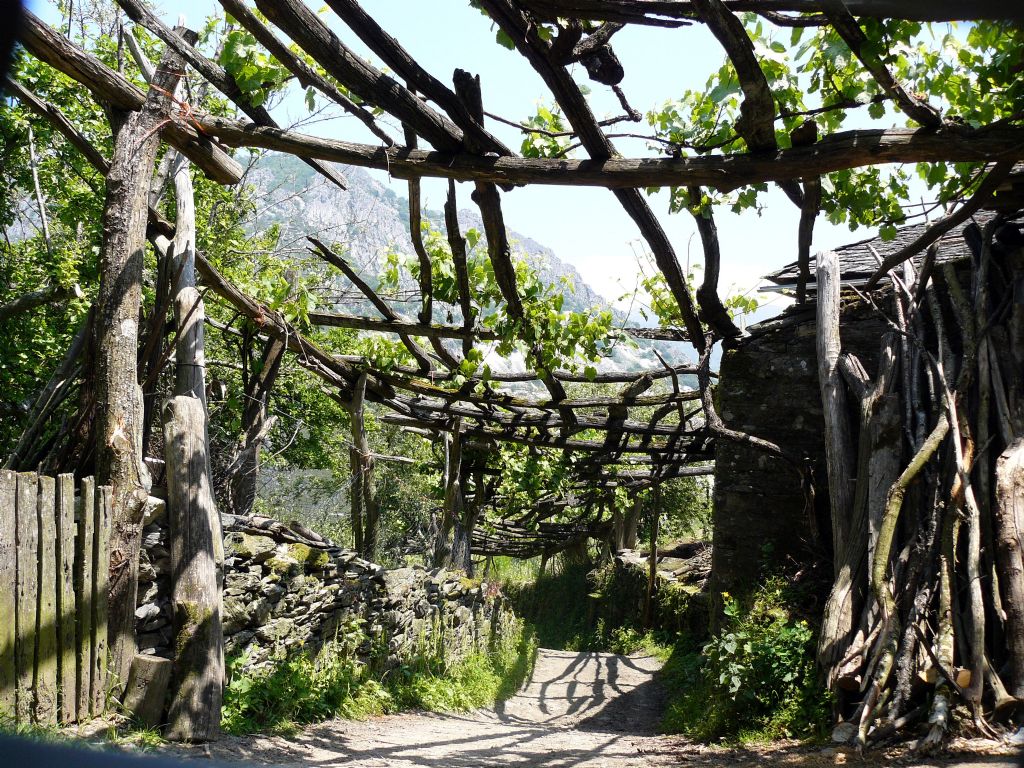 El pueblo de Pradias, punto de partida de la ruta y ejemplo de arquitectura popular. Grandes casonas de piedra y carpintería de madera decorada con colores muy llamativos (rojo, azul o verde). Sus emparrados de vid a lo largo de sus caminos son un distintivo de la zona.