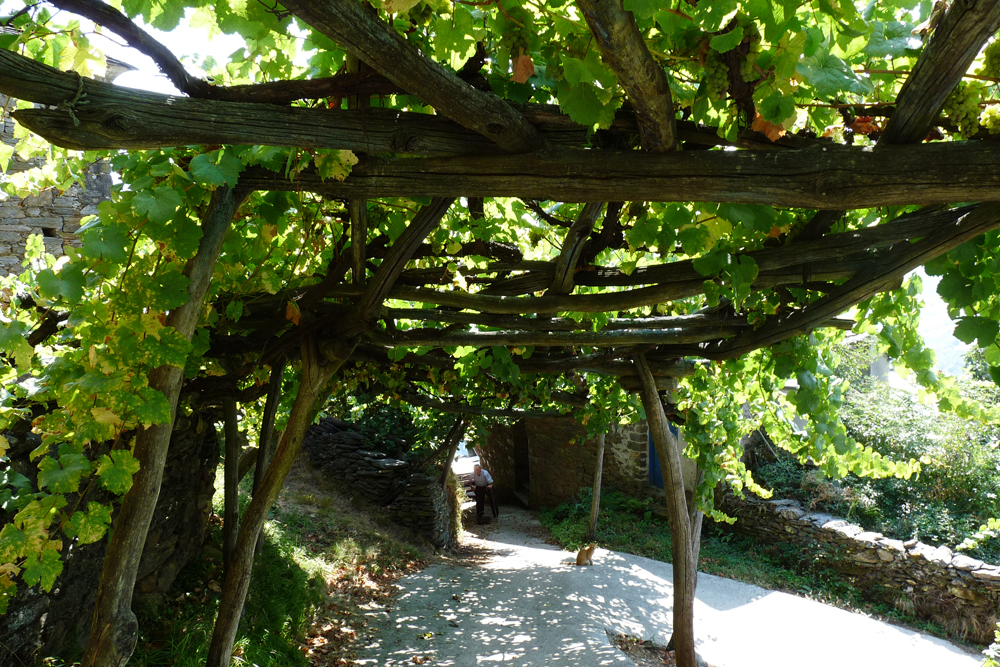 Y entorno al pueblo, con una magnífica orientación sur, el extenso viñedo en el que se vendimia la uva para la elaboración del Vino de Cangas.