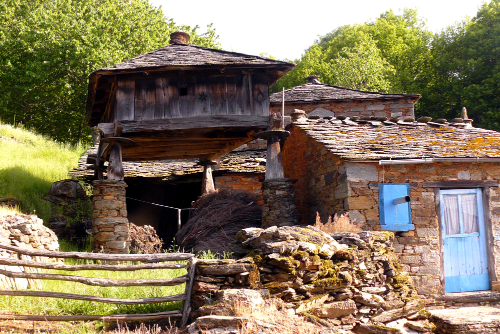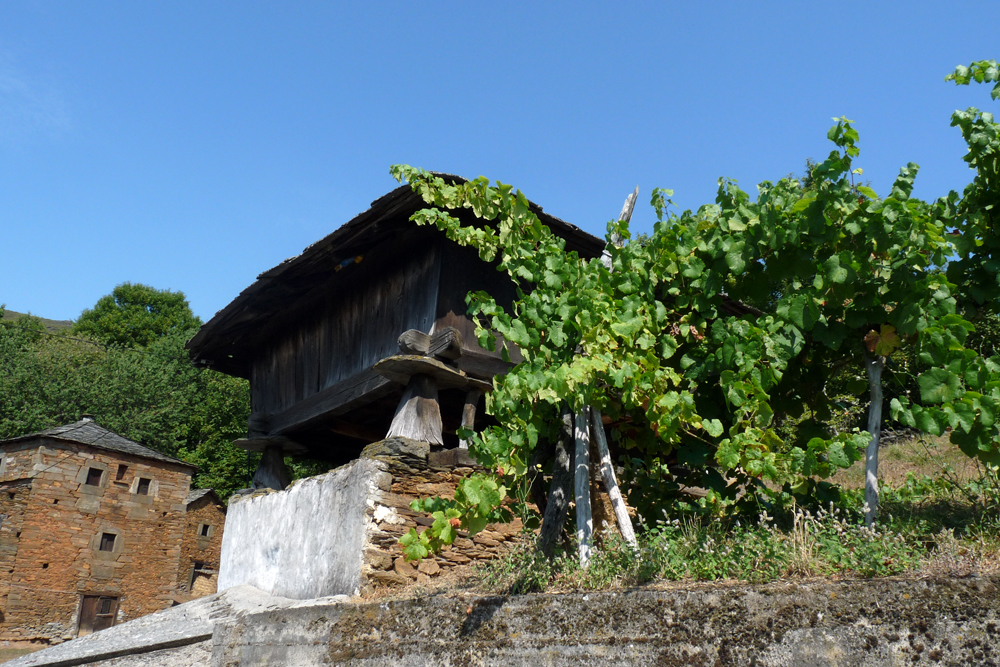 Hórreos y paneras, casas de piedra rojiza, calles empedradas y cielo verde de emparrados y de repente un gran horno adosado a una casa. Pasear por Uría significa vivir un auténtico contraste de texturas y colores.