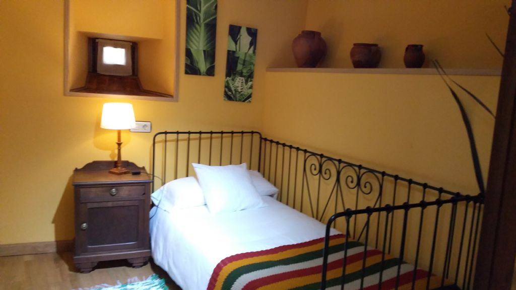 2 habitaciones dobles con baño compartido. Una con cama de 1,50 y otra con 3 camas individuales.